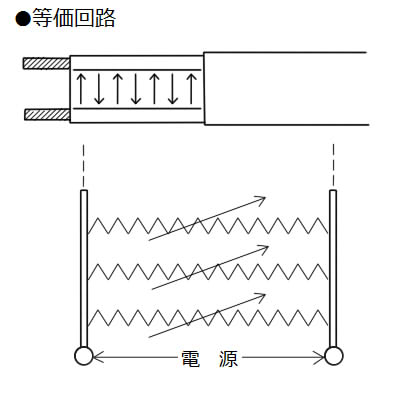 ケーブル長全体に沿って、発熱抵抗体内の平行導線間に電路が形成されており、並列回路を成しています。
